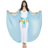 Dámské šaty Kleopatry se skvěle hodí na večírek v egyptském stylu nebo na historickou či filmovou párty. Tento převlek se skládá z bílých šatů s ozdobným obojkem kolem krku, ozdobného pásku a návleků na ruce.
